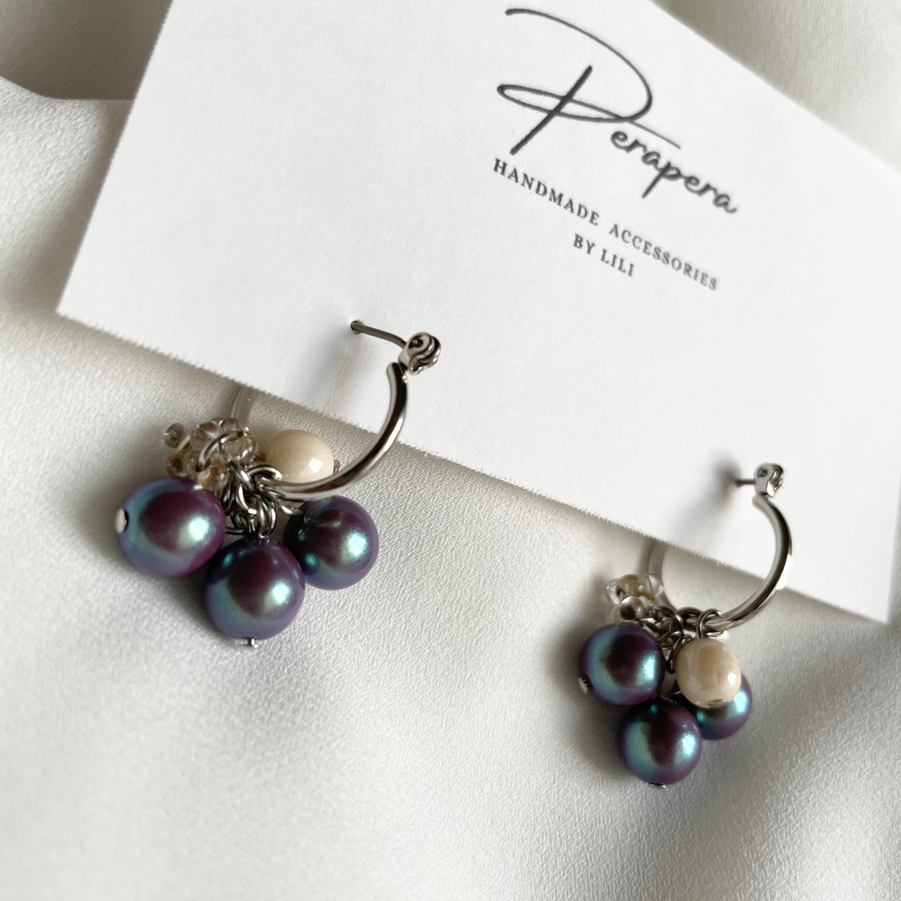 絶妙なパープルのパールビーズが耳元でコロンと揺れます。